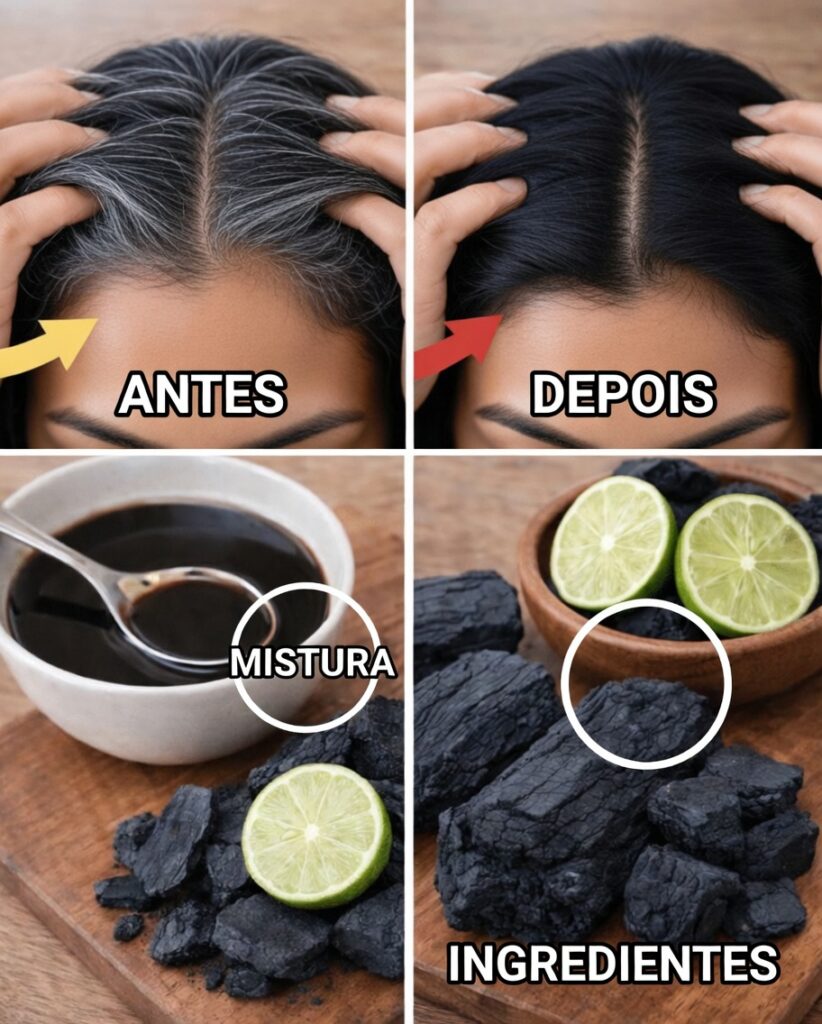 Outro ponto que chama atenção de quem se incomoda com o contraste dos fios brancos: ao ser misturado ao suco de limão, o carvão ativado pode conferir um pigmento escuro temporário, ajudando a disfarçar suavemente os fios prateados e trazendo de volta um pouco da sensação de juventude — sem compromissos de longo prazo.