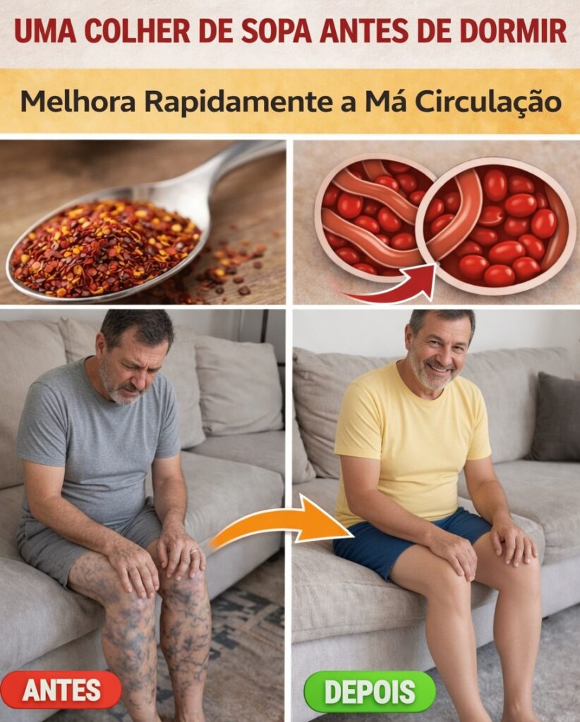 Melhorar a circulação não precisa ser difícil nem caro. Ao adicionar uma pequena quantidade de pimenta chili em pó à sua rotina noturna — de forma cuidadosa e moderada — você pode apoiar o fluxo sanguíneo, reduzir desconfortos e acordar com uma sensação melhor nas pernas e nos pés. Experimente incorporar esse hábito hoje e observe como seu corpo reage.