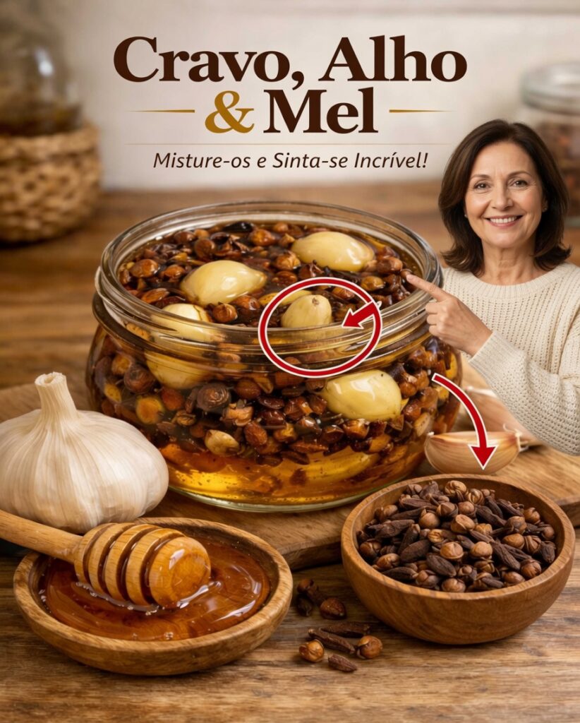 Alho, cravo-da-índia e mel formam uma combinação tradicional, simples e acessível, associada ao suporte do sistema imunitário, do bem-estar digestivo, da saúde cardiovascular e do conforto geral, graças às suas propriedades antioxidantes, calmantes e antimicrobianas. Não é uma cura milagrosa, mas pode ser um complemento inteligente para uma rotina de autocuidado, quando usado com equilíbrio.