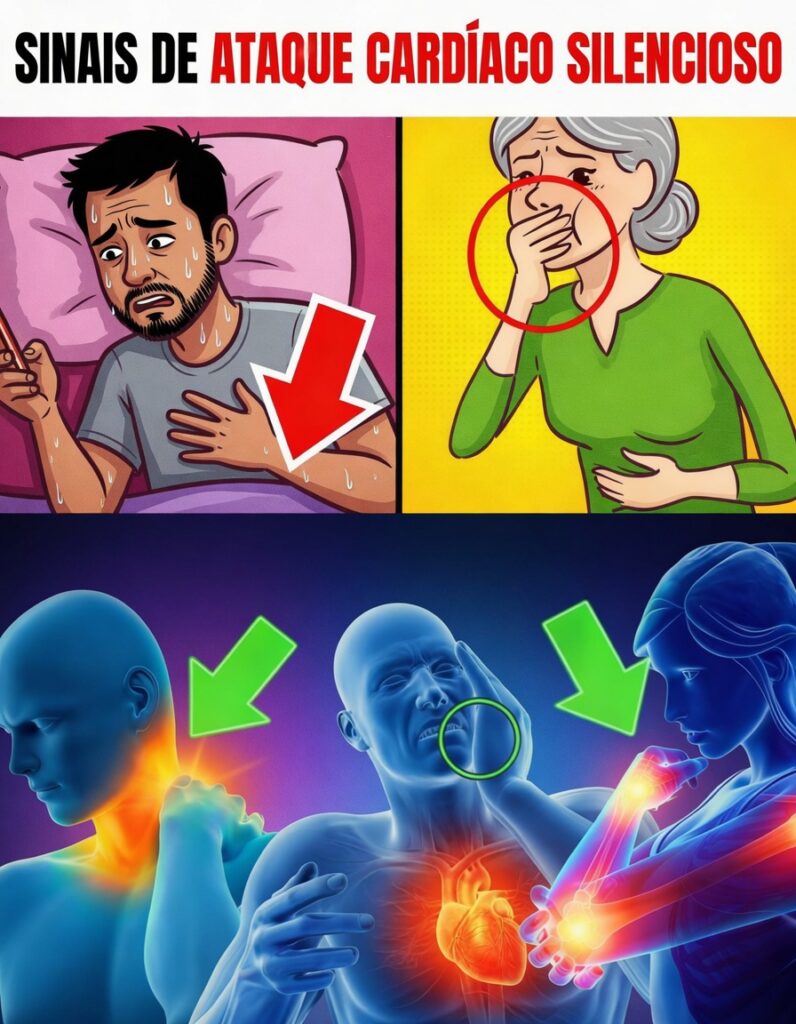 O mais alarmante: às vezes não há sinais óbvios. Uma parte relevante dos enfartes em idosos pode ser silenciosa (estimativas frequentemente citadas situam-se em torno de 20–30%), causando dano sem o “alerta” típico.